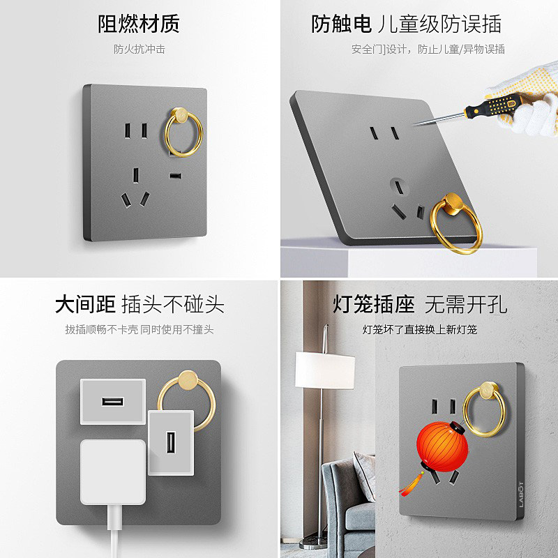 📚 86型装阳台挂灯笼插座带吊环电源开关插座面板天花板七孔五孔插座