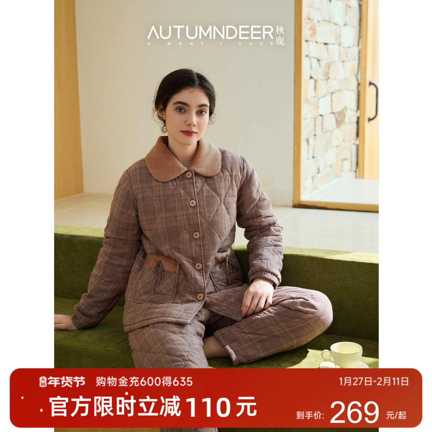 17¥ CZ356 yKdZUQMNOjl¥ https://m.tb.cn/h.7HzAW5d 秋鹿梭织色织格三夹棉睡衣女款冬天扣领纯棉加厚夹棉家居服套装 --------------------- 【原售价】509元 【现售价】379元。