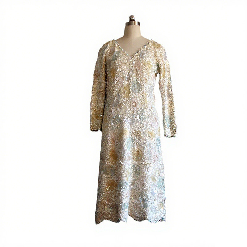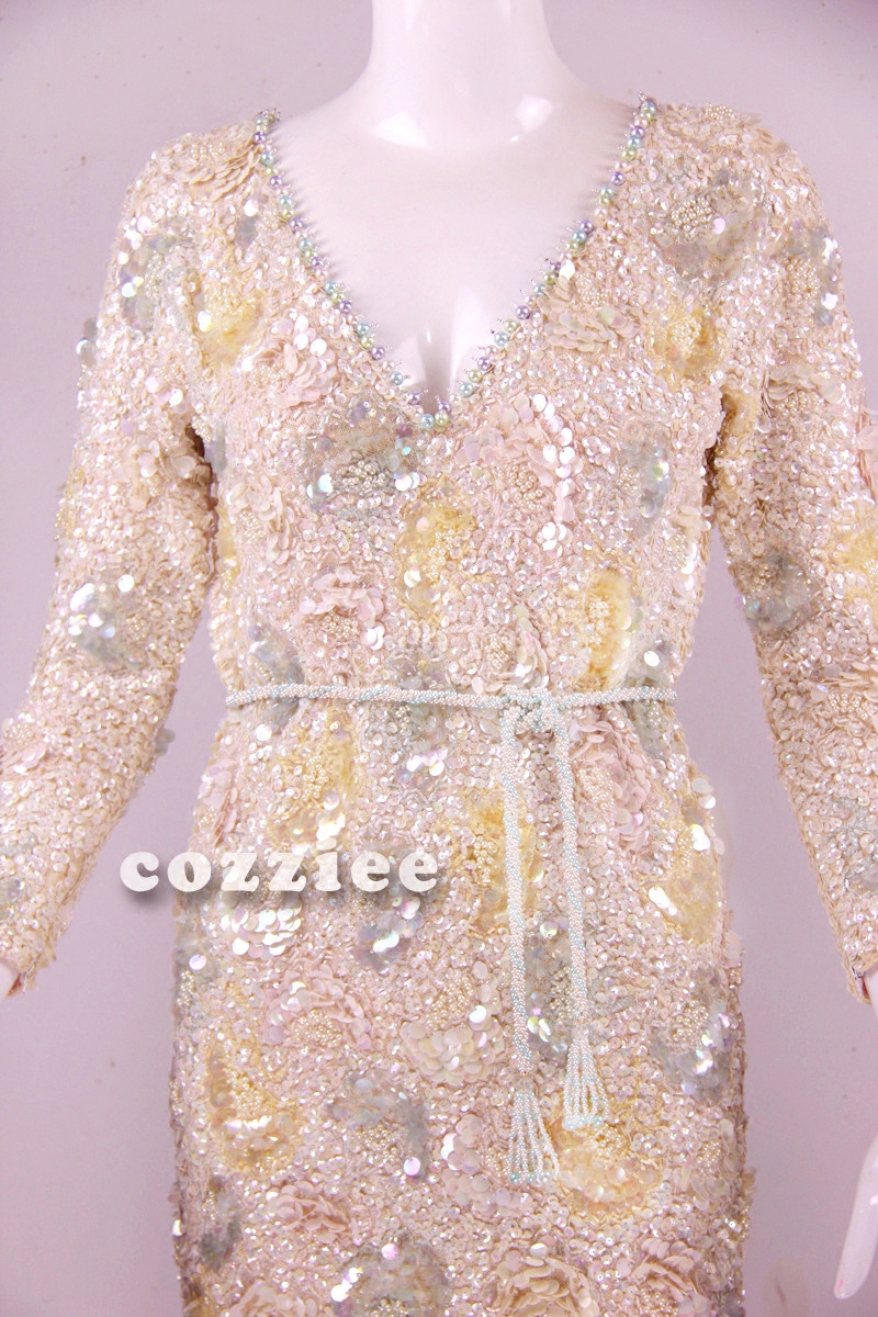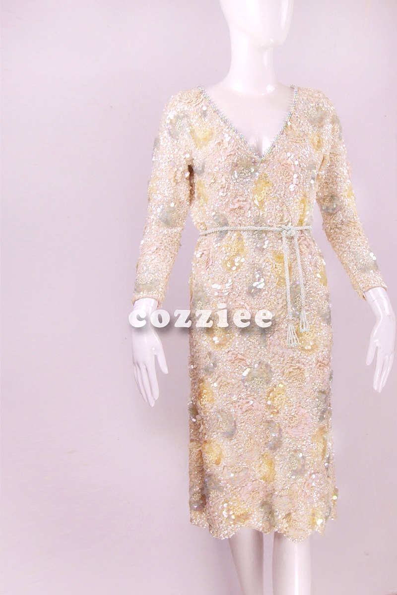 📚 vintage连衣裙【高定系列】1950s大牌手工羊毛针织珍珠宴会晚礼服