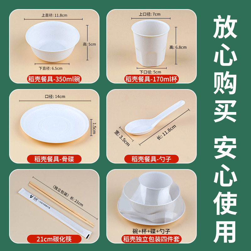 📚 一次性餐具套装四件套稻壳碗筷餐盘纸盘商用聚餐三件套食品级碗碟