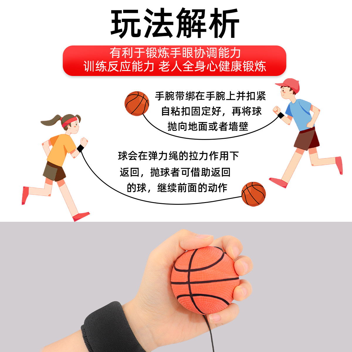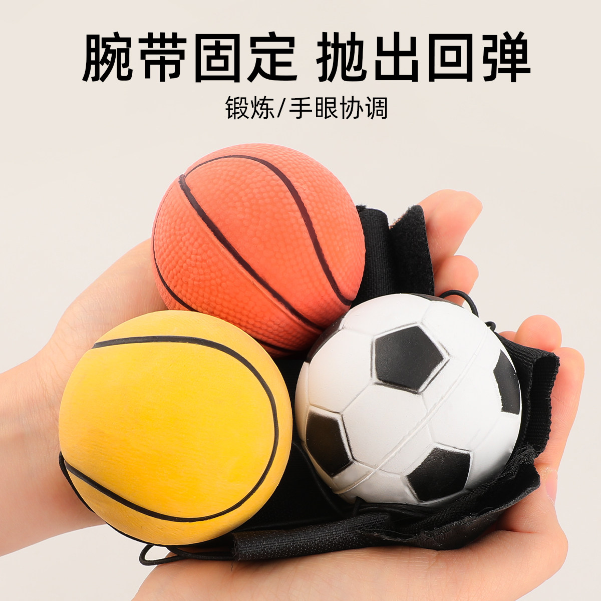 📚 手腕弹力球带绳儿童高弹实心橡胶魔力弹弹球男孩运动回力弹跳玩具