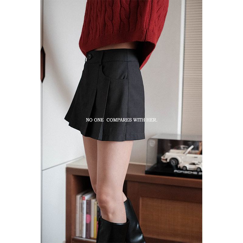 📚 与她原创小众设计 秋冬高腰超短款辣妹A字百褶西装半身裙裤热裤女
