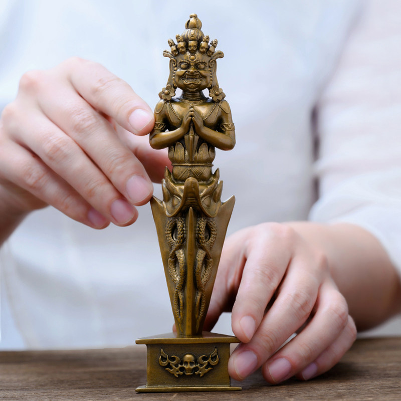 📚 简修行莲师普巴金刚橛纯黄铜普巴金刚杵法器摆件手把件大号随身像