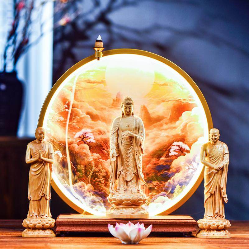 📚 释迦牟尼佛像家用供奉释迦摩尼站像阿难迦叶尊者大日如来禅意摆件