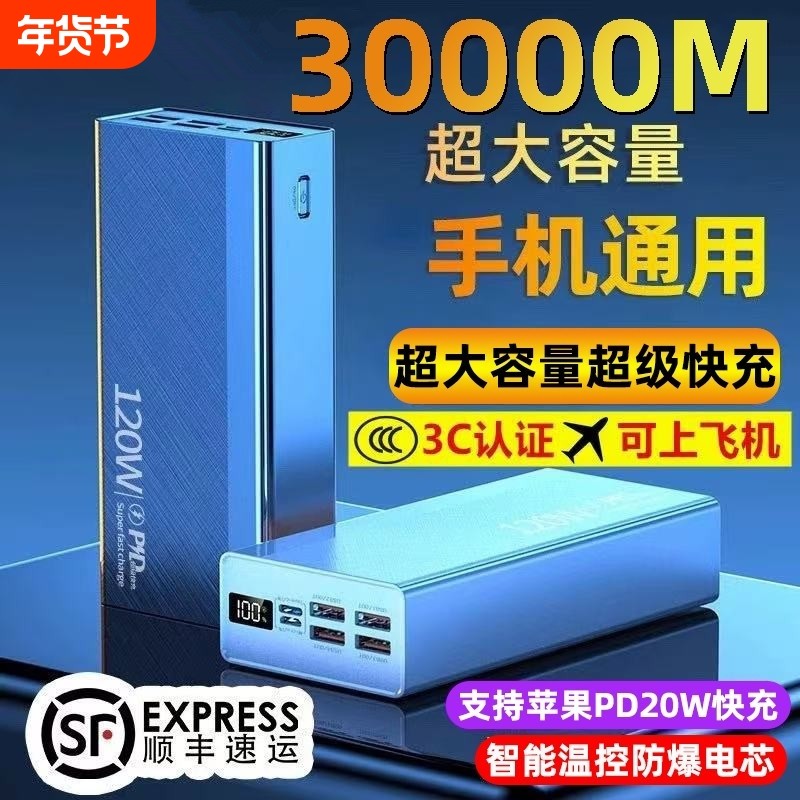 📚 新国标3C认证超级快充电宝超大容量8万毫安户外10万便携移动电源50000适用华为120苹果PD20Wvivooppo固态