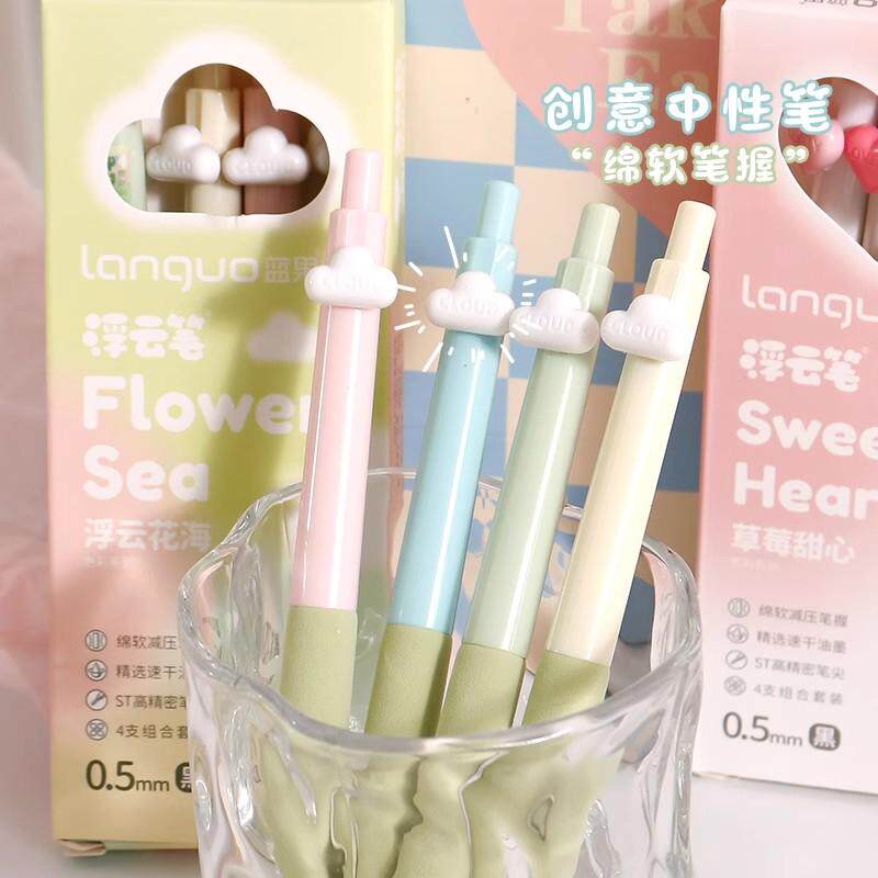 📚 爱心浮云笔ST头防疲劳按动中性笔少女心ins高颜值0.5速干刷题专用