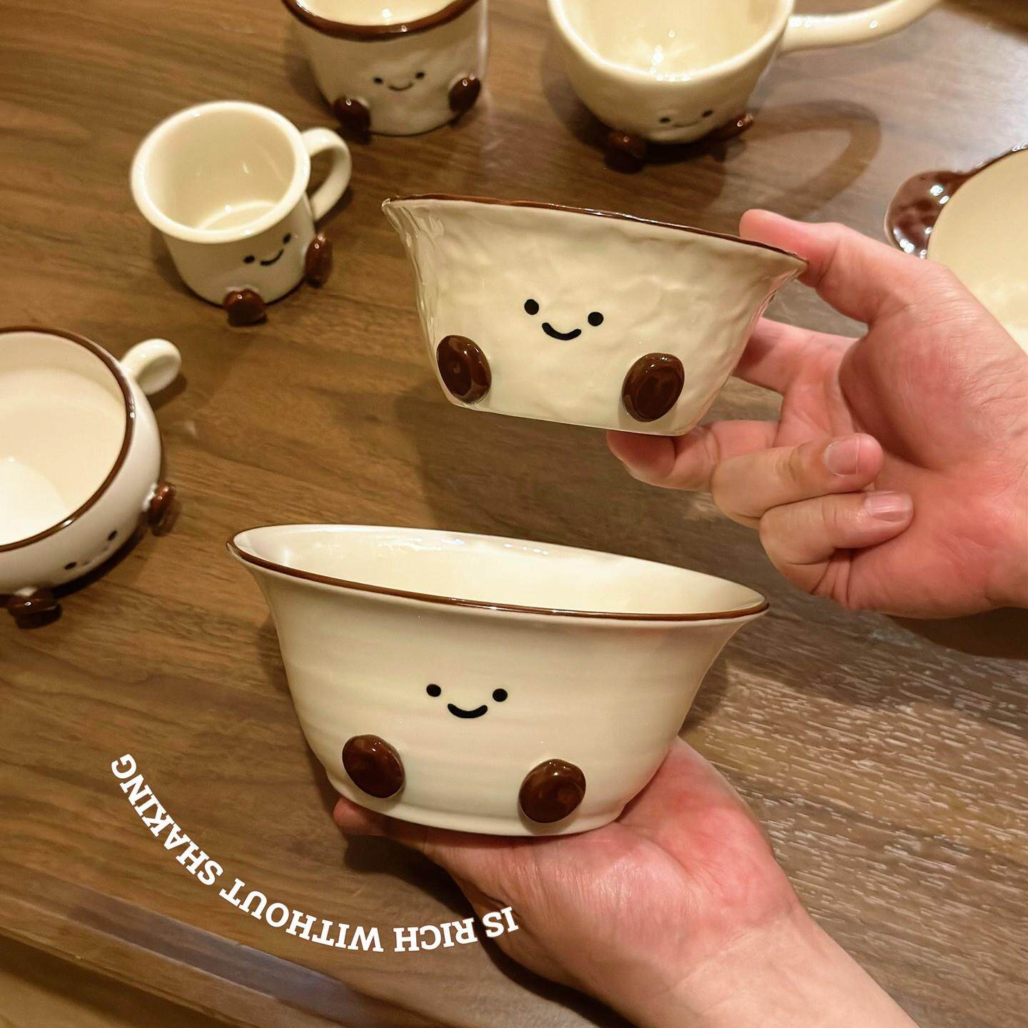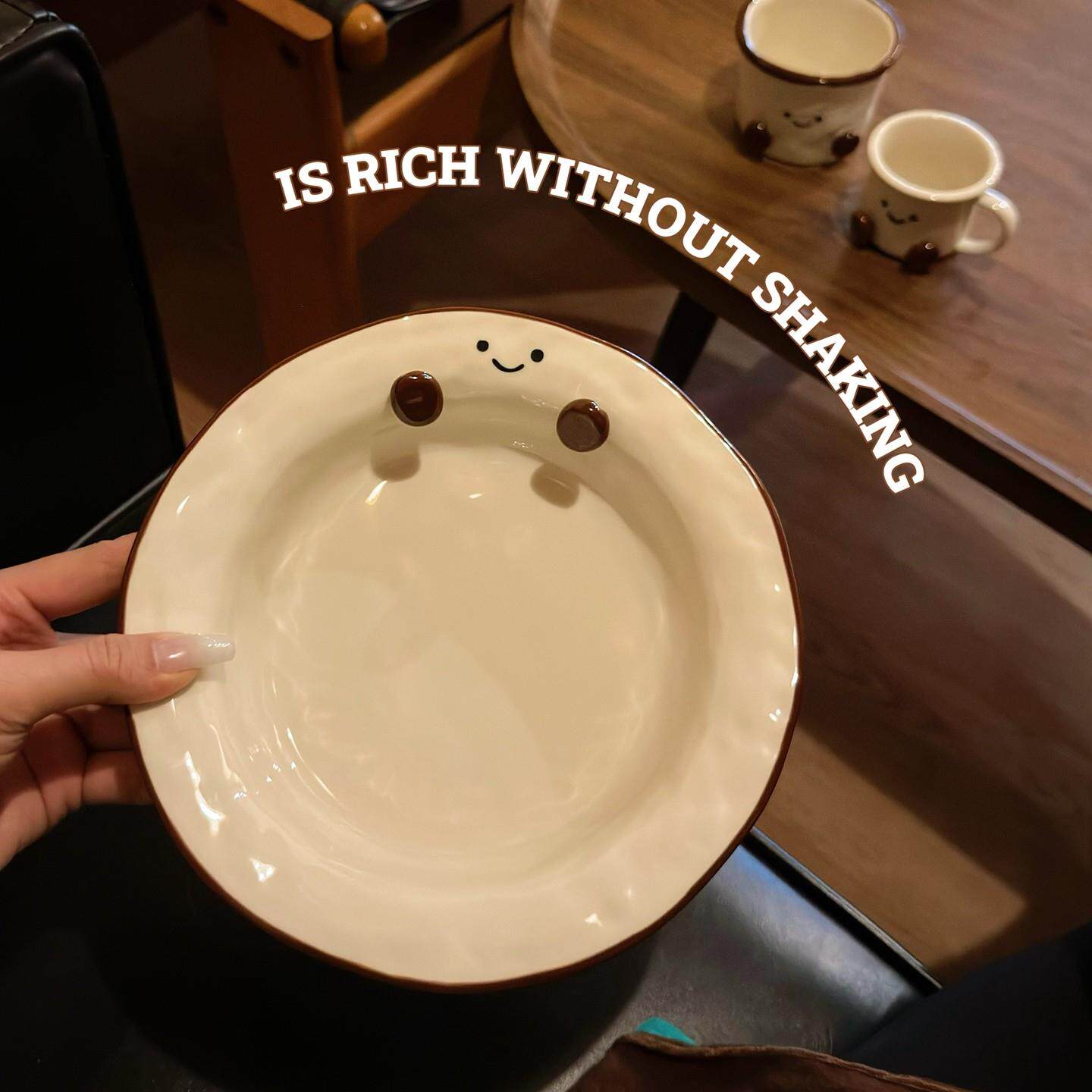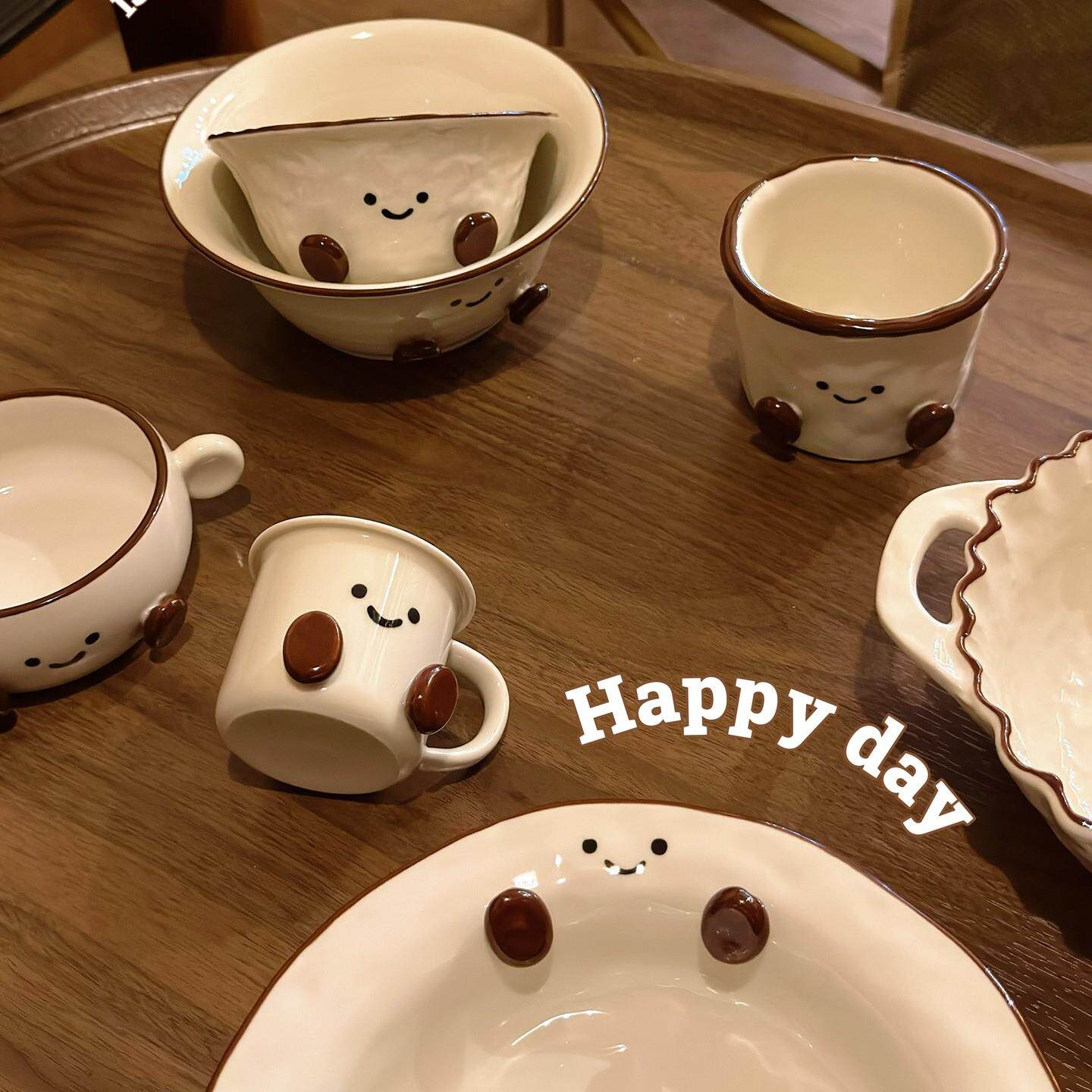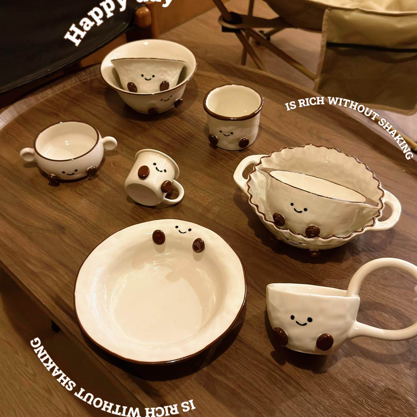 📚 手绘釉下彩可可豆陶瓷餐具高颜值家用餐盘米饭碗装泡面 面碗咖啡
