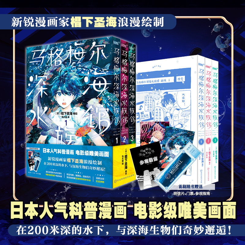 📚 现货马格梅尔深海水族馆漫画书1-3册【首刷赠参观指南手册+明信片*2+门票书签】日本高人气科普漫画书籍 椙下圣海 电影级唯美画面