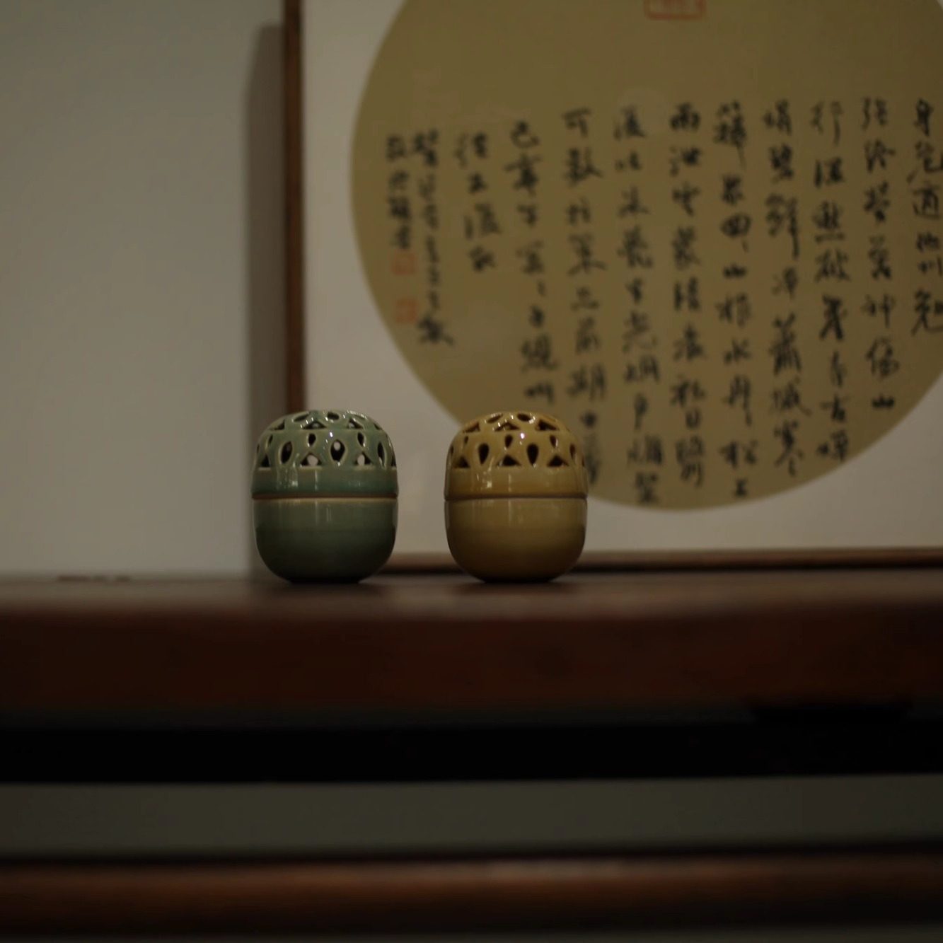 📚 《耀州窑》青瓷焚香 雕空 小香炉 书房茶室 香薰 焚香 香道