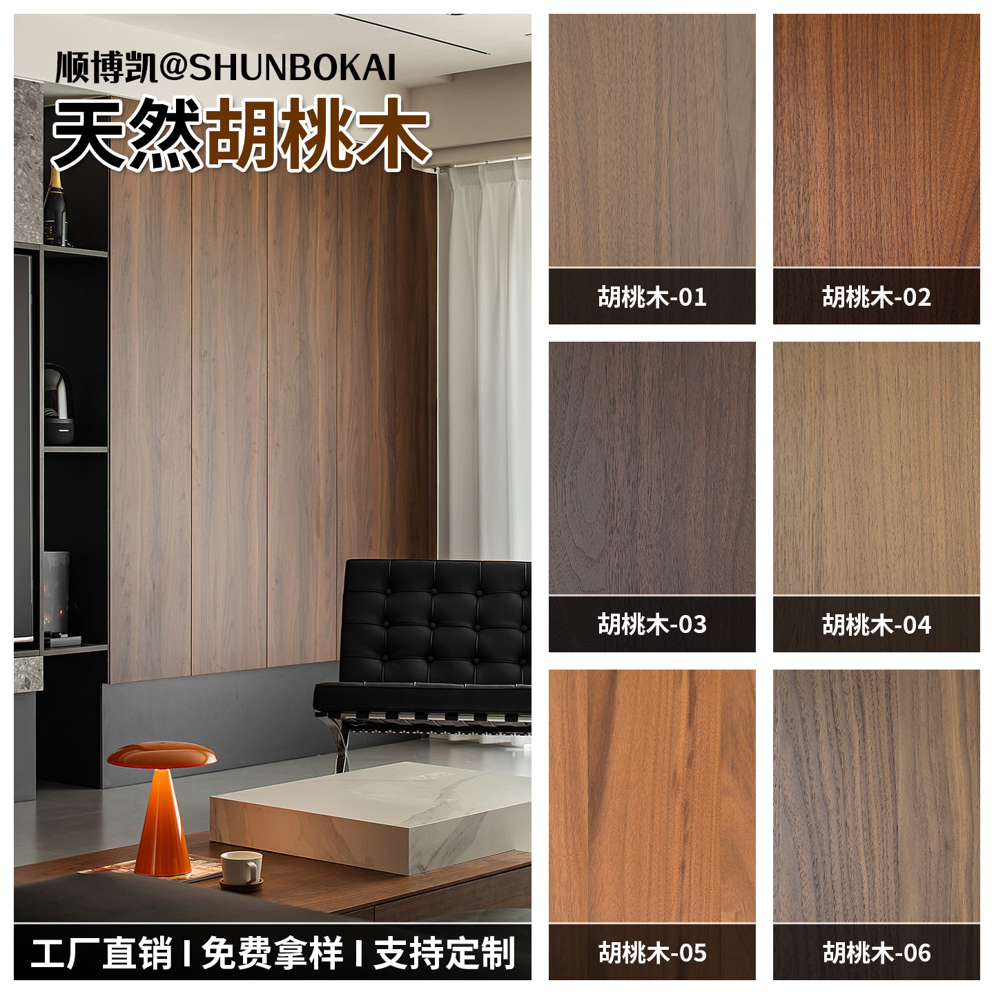 📚 意式半透木饰面板黑色天然胡桃木白橡木护墙板kd板柜体板实木贴皮