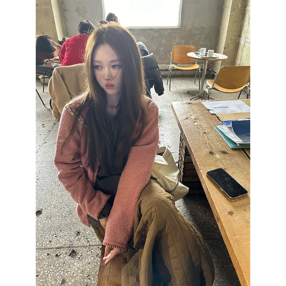 📚 Avocadong 原创嗲嗲两色‘新年好事’拼色开衫外套春款短外套