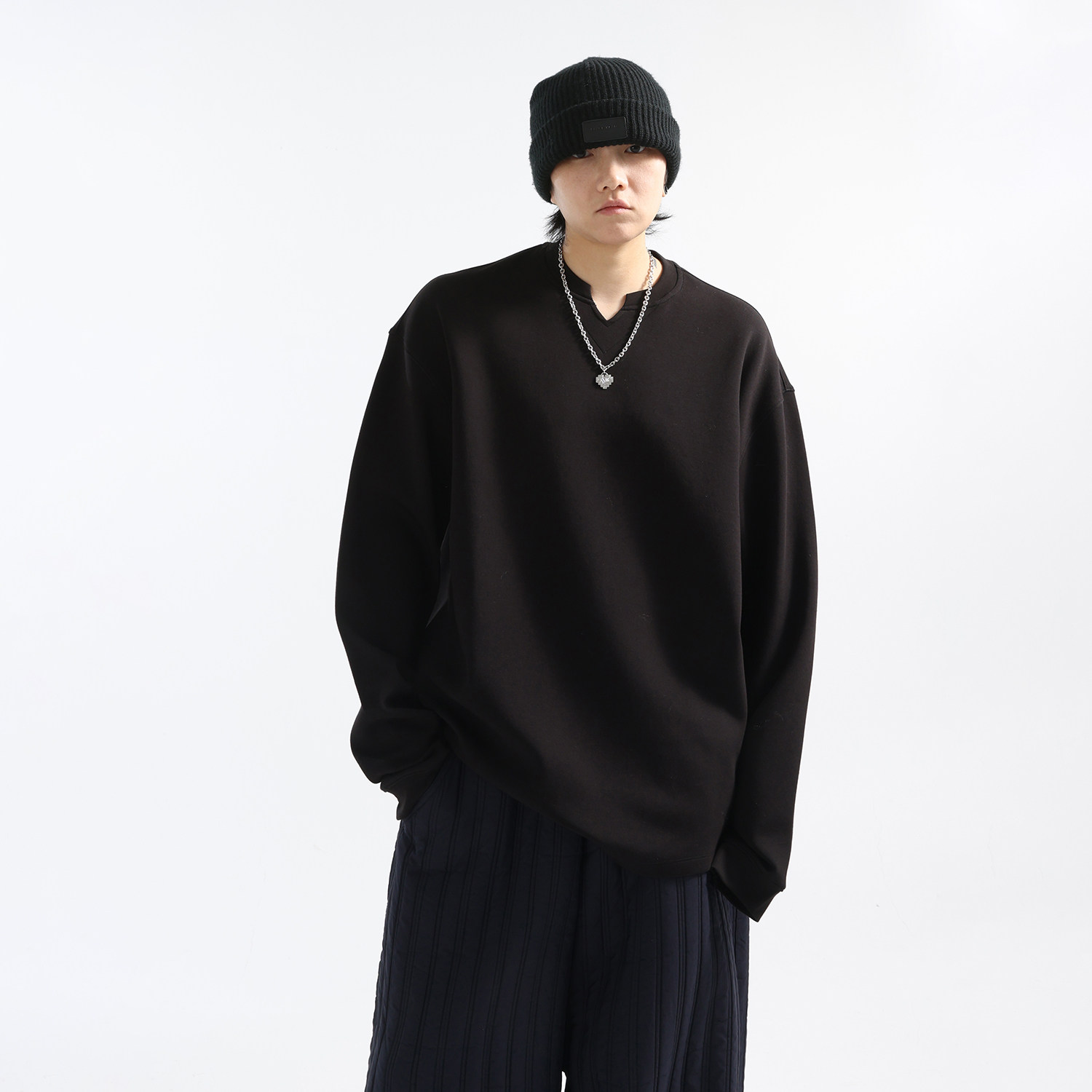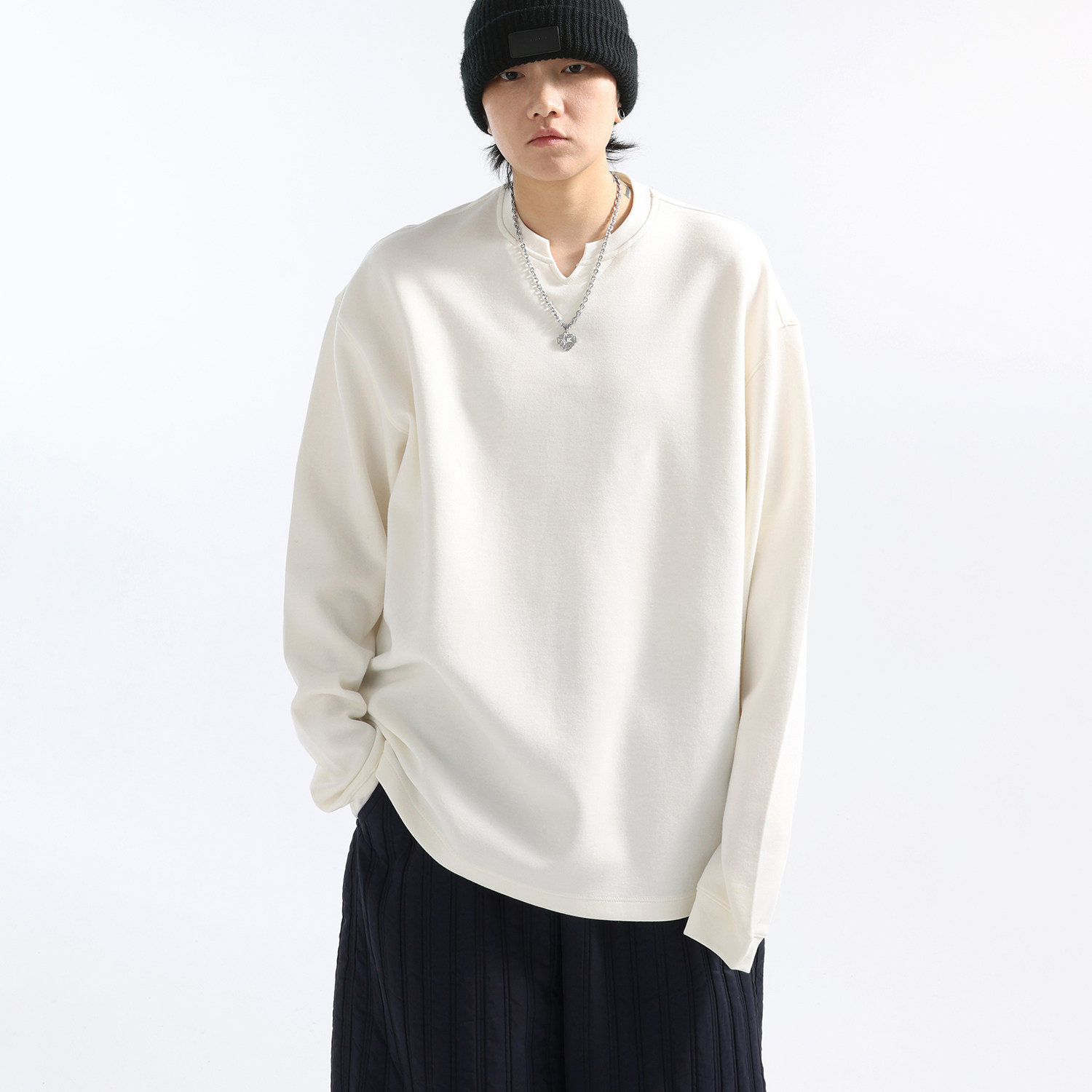 📚 GRNL 软构筑 重磅300G莫代尔软糯空气层小V领套头打底TEE长袖卫衣