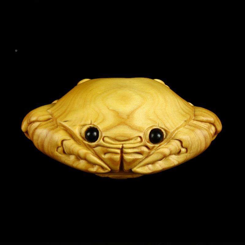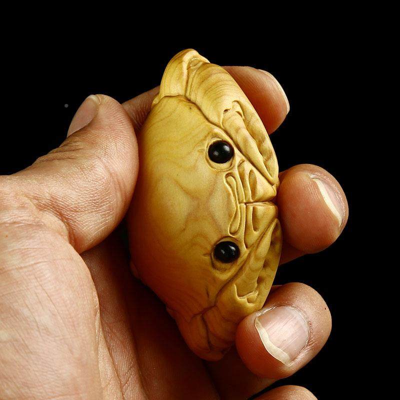 📚 工艺品招实木小黄杨木雕雕刻财螃蟹方来财文玩男士随叶身纵横天下