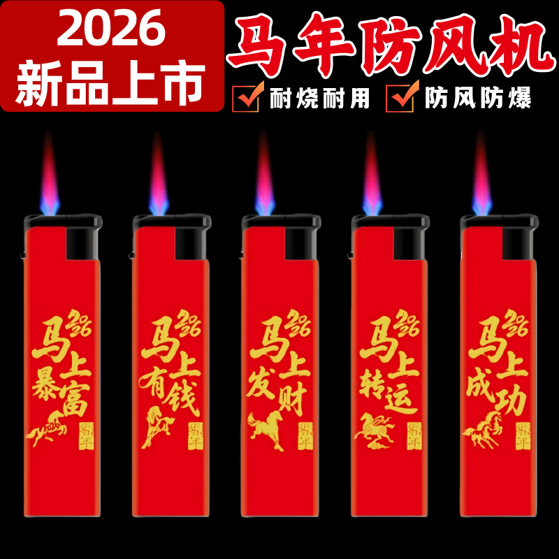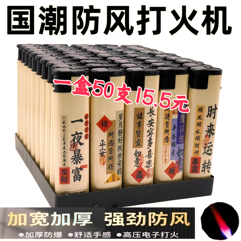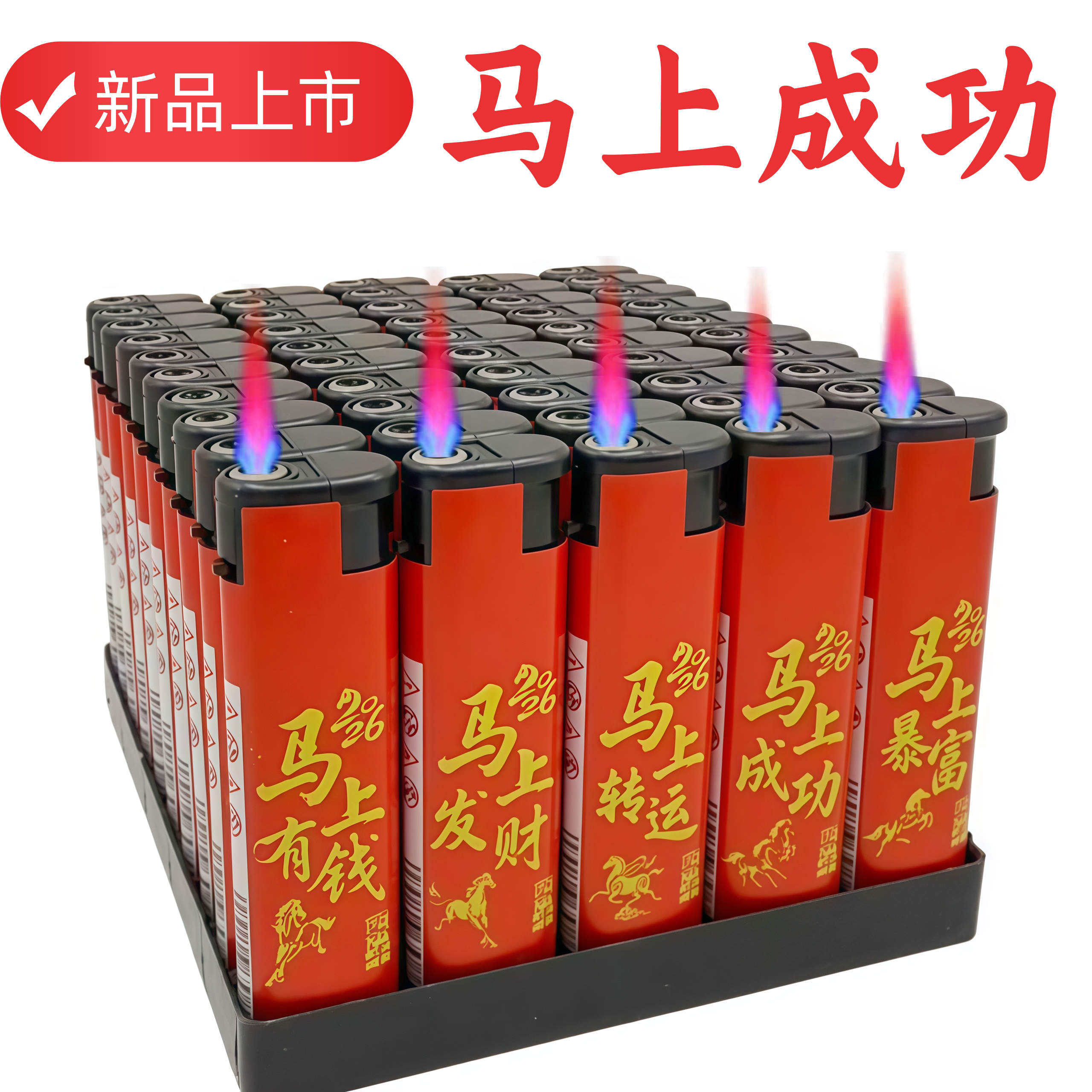 📚 厂家直销新款50支一盒装直冲创意防风打火机加厚持久耐用充气明火