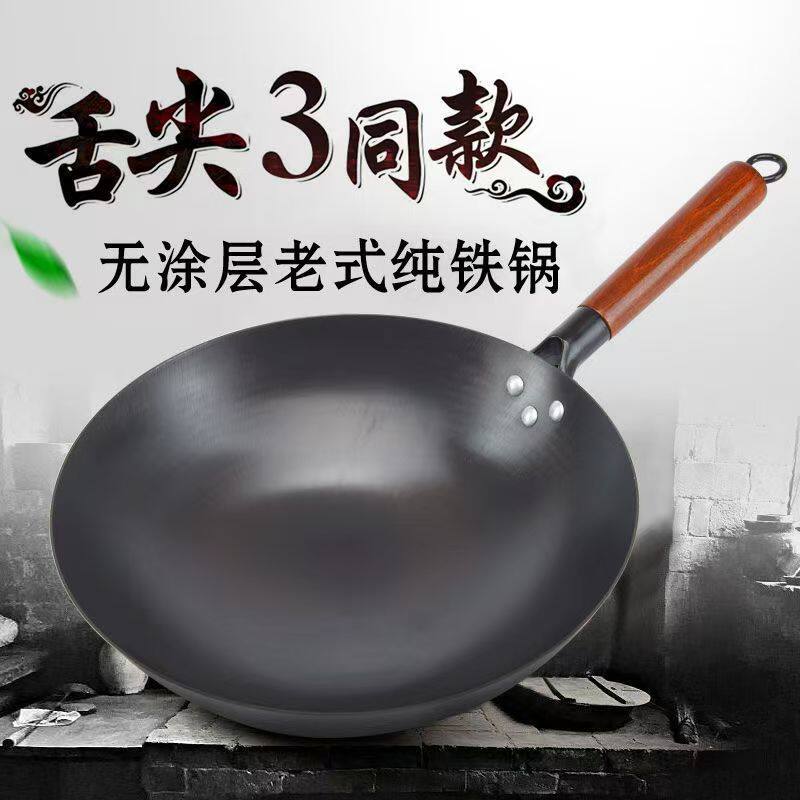 📚 无涂层不粘锅第一名老式铁锅家用浙江永康圆底炒锅无烟煤气灶专用