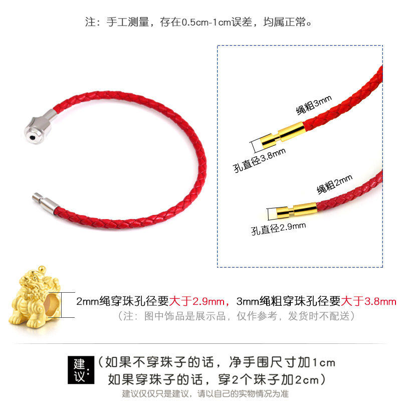 📚 牛皮绳马年本命年红手绳可穿珠黄金饰品DIY红绳手链女手绳编织绳