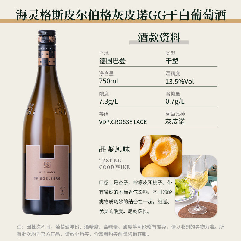 📚 德国原瓶进口VDP名庄海灵格斯皮尔伯格灰皮诺GG干白葡萄酒750ml
