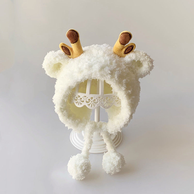 📚 婴儿男女宝宝麋鹿角帽子婴幼儿秋冬季护耳系带毛加厚绒帽可爱超萌