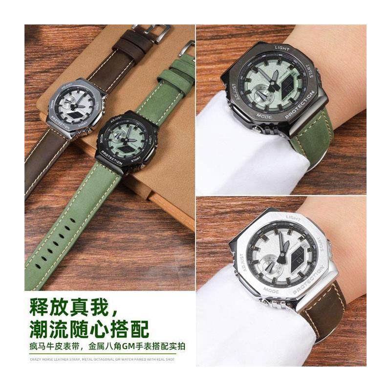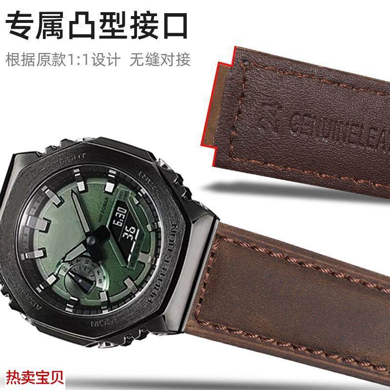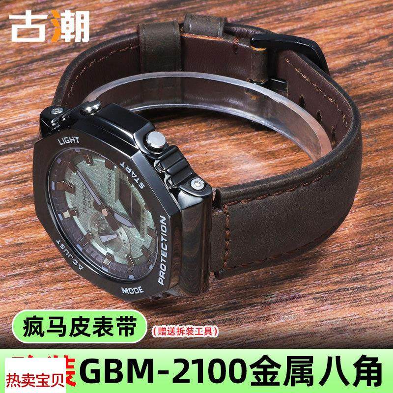 📚 适用原装G-SHOCK卡西欧GBM-2100-1A/7A金属八角改装疯马皮手表带