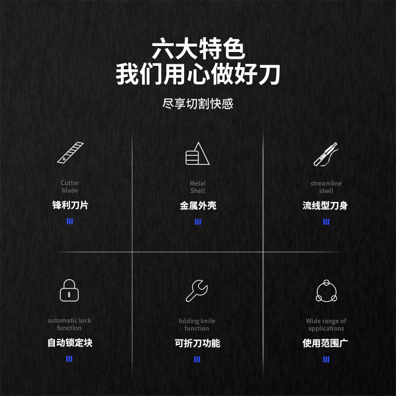📚 得力黑刃美工刀小型裁纸刀钨钢黑科技壁纸刀拆快递小刀工业级不锈钢刀身合金刀片30度雕刻刀开箱刀美术生专用