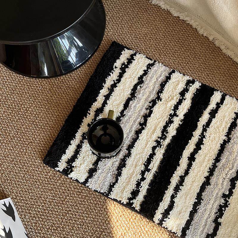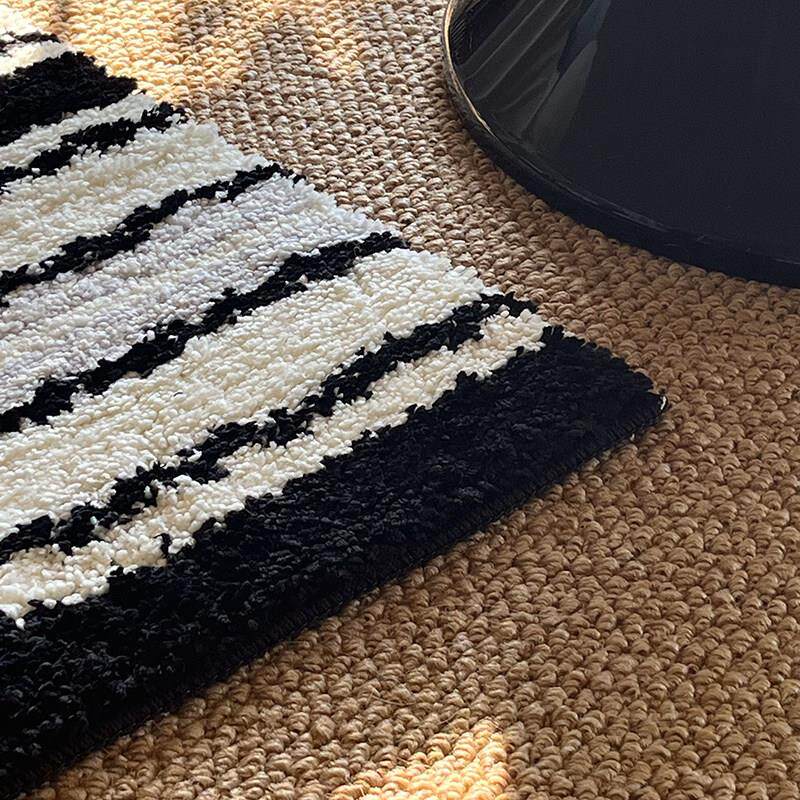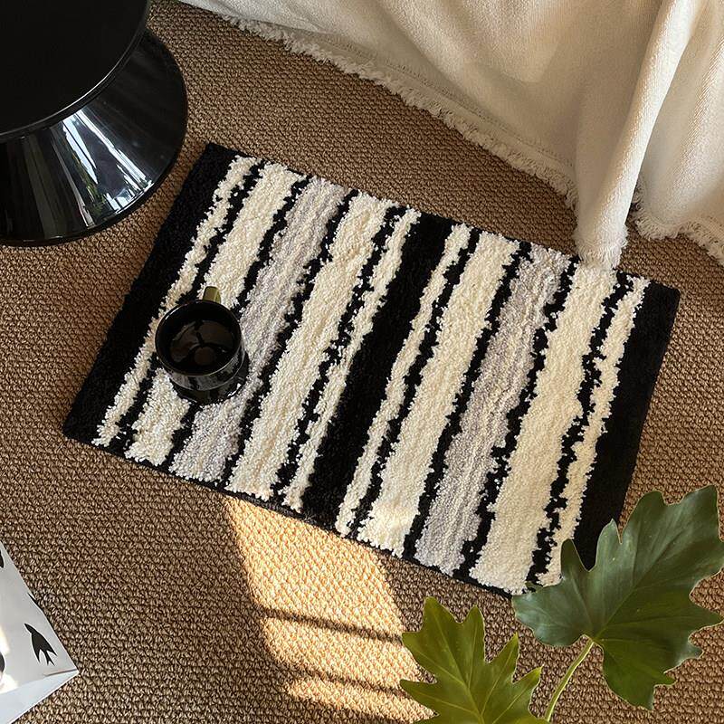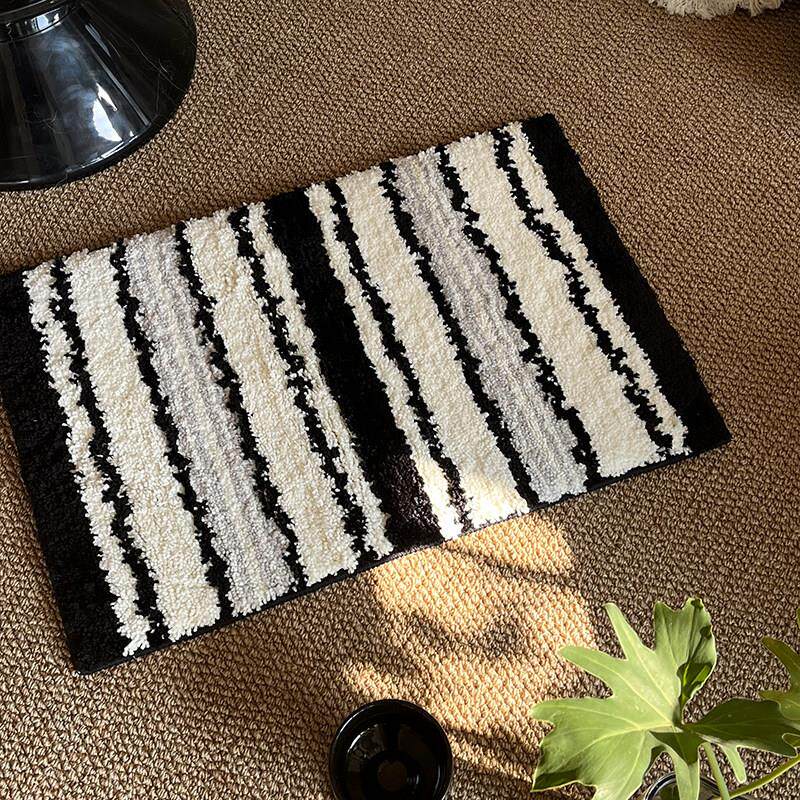 📚 南岛宝社[黑白条纹]ins极简高级感植毛绒加厚吸水防滑浴室地毯