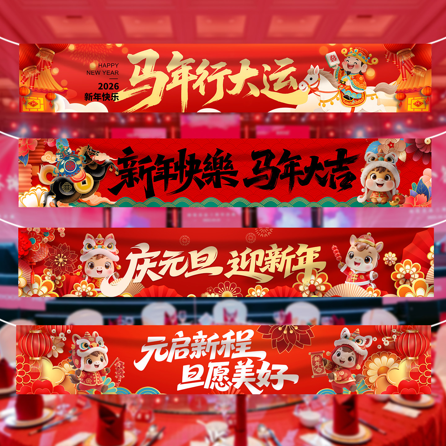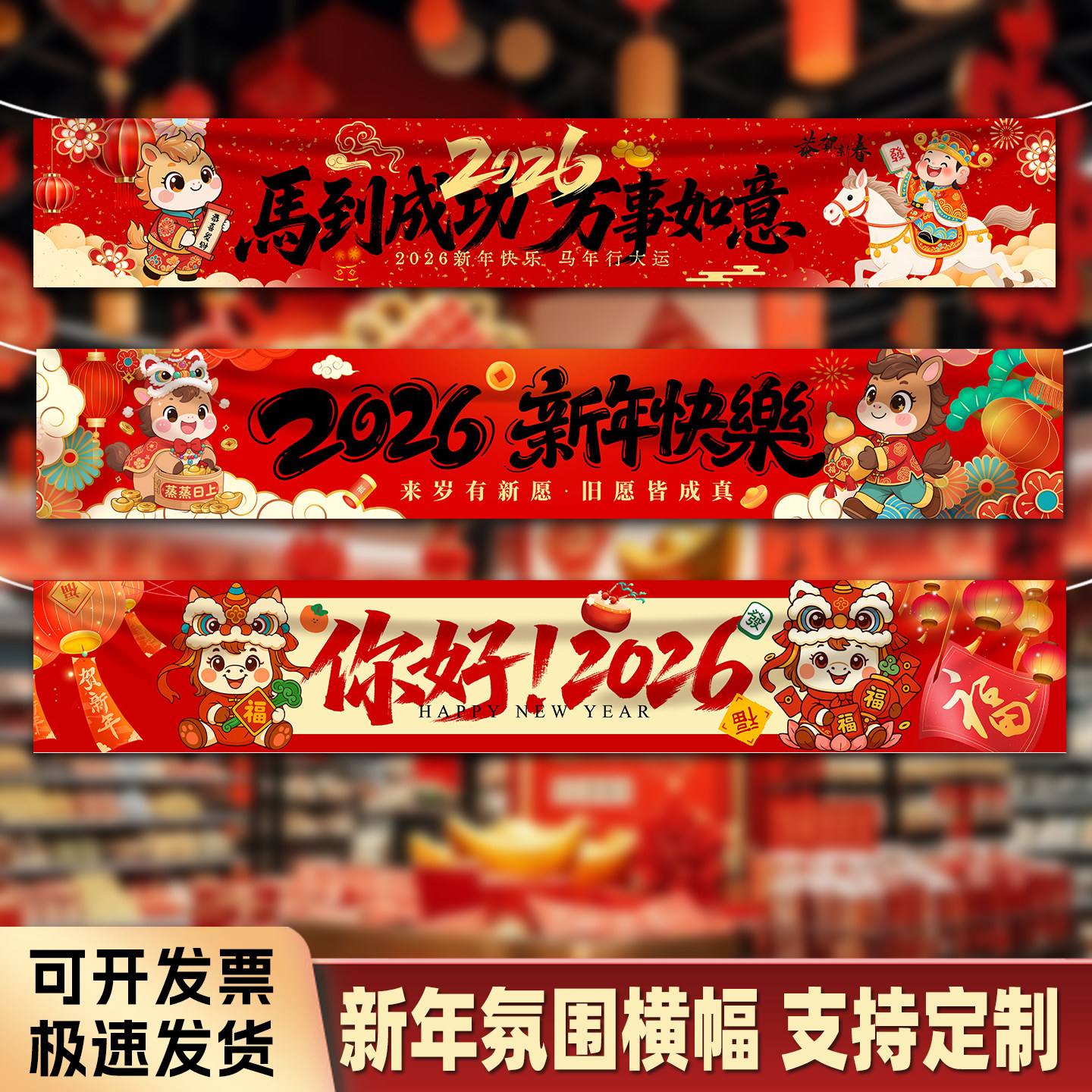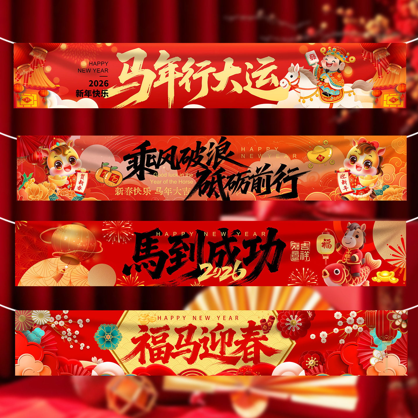 📚 2026年新款马年春节横幅氛围装饰挂布物业景点新年快乐装扮年会拉条布置道具挂件元旦节日条幅定制做设计条幅