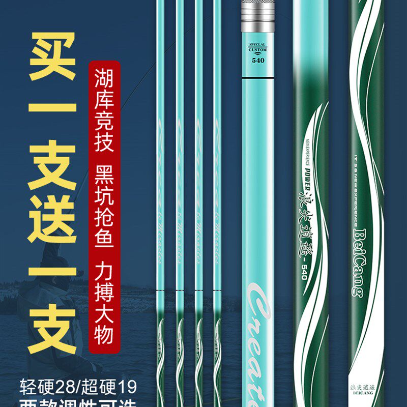 📚 浪尖逍遥鱼竿手竿超轻超硬碳素台钓鱼竿19调6H大物杆鲫鱼竿鲤鱼竿