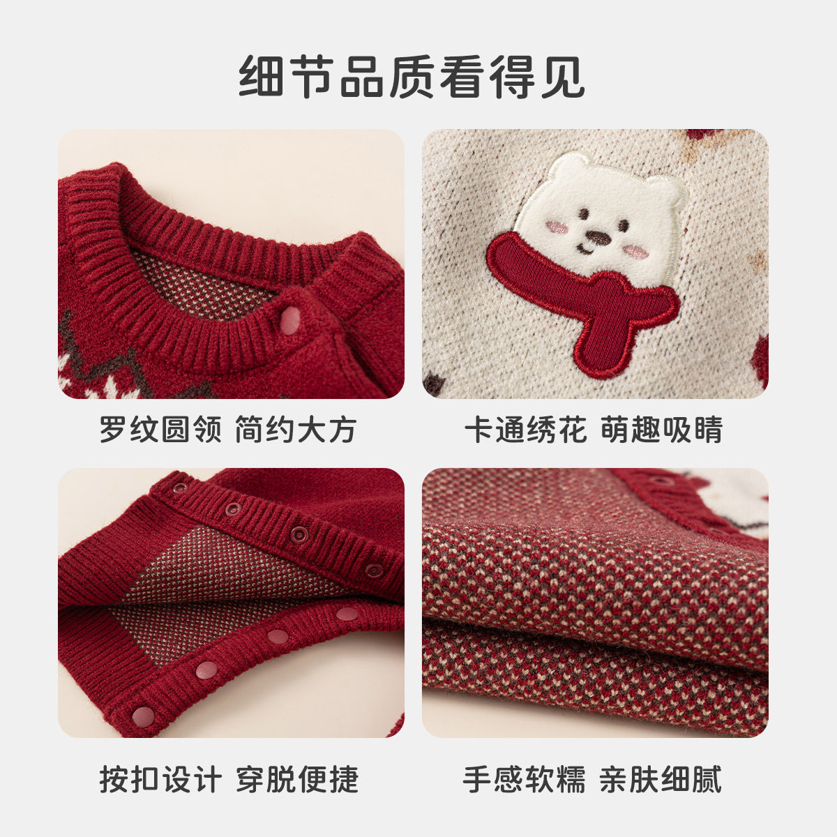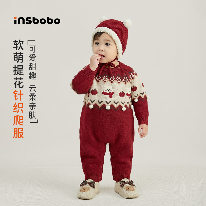 👀这款毛衣的设计真的太洋气了!红色与新年元素的完美结合,让整个冬天都充满了浓浓的喜庆氛围。连体设计更是方便实用,无论是外出还是宝宝外出活动,都能轻松应对。