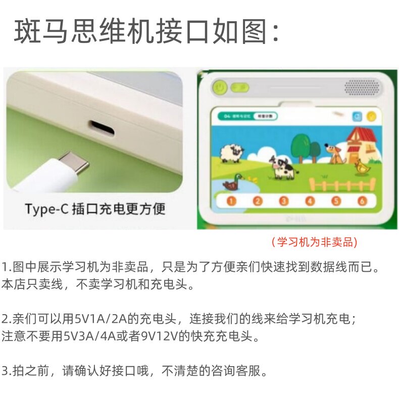 📚 振发 适用于斑马思维机儿童学习机USB数据线充电线