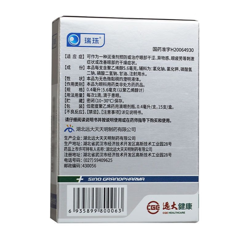 📚 [瑞珠] 聚乙烯醇滴眼液 0.4ml*15支/盒防治眼部干涩 异物感眼疲劳