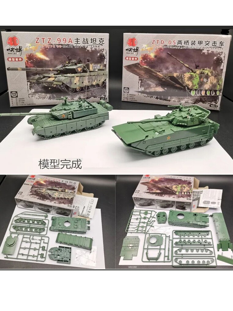 📚 4D拼装模型1/72中国99A坦克 ZTD-05两栖车 PLZ-05式加榴炮 红箭10