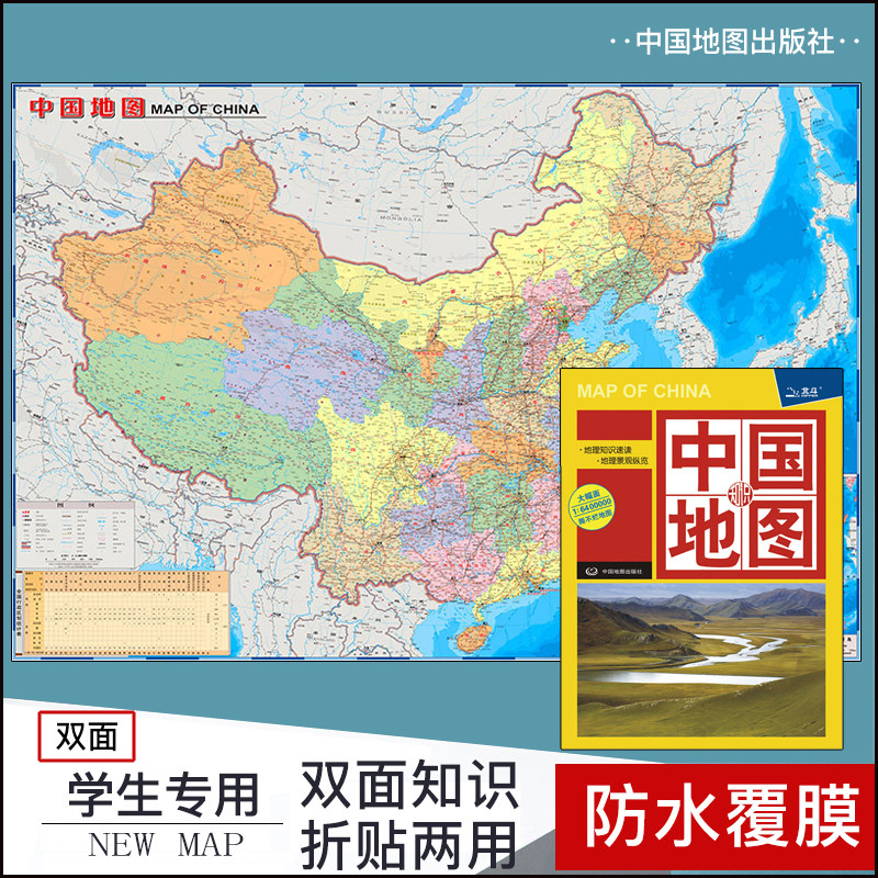 📚 2023年 中国知识地图 大幅面 政区 地形图 地势图 地貌图 中学生用 学习地理 折叠地图高清防水耐折 中国地图出版社地理工具书