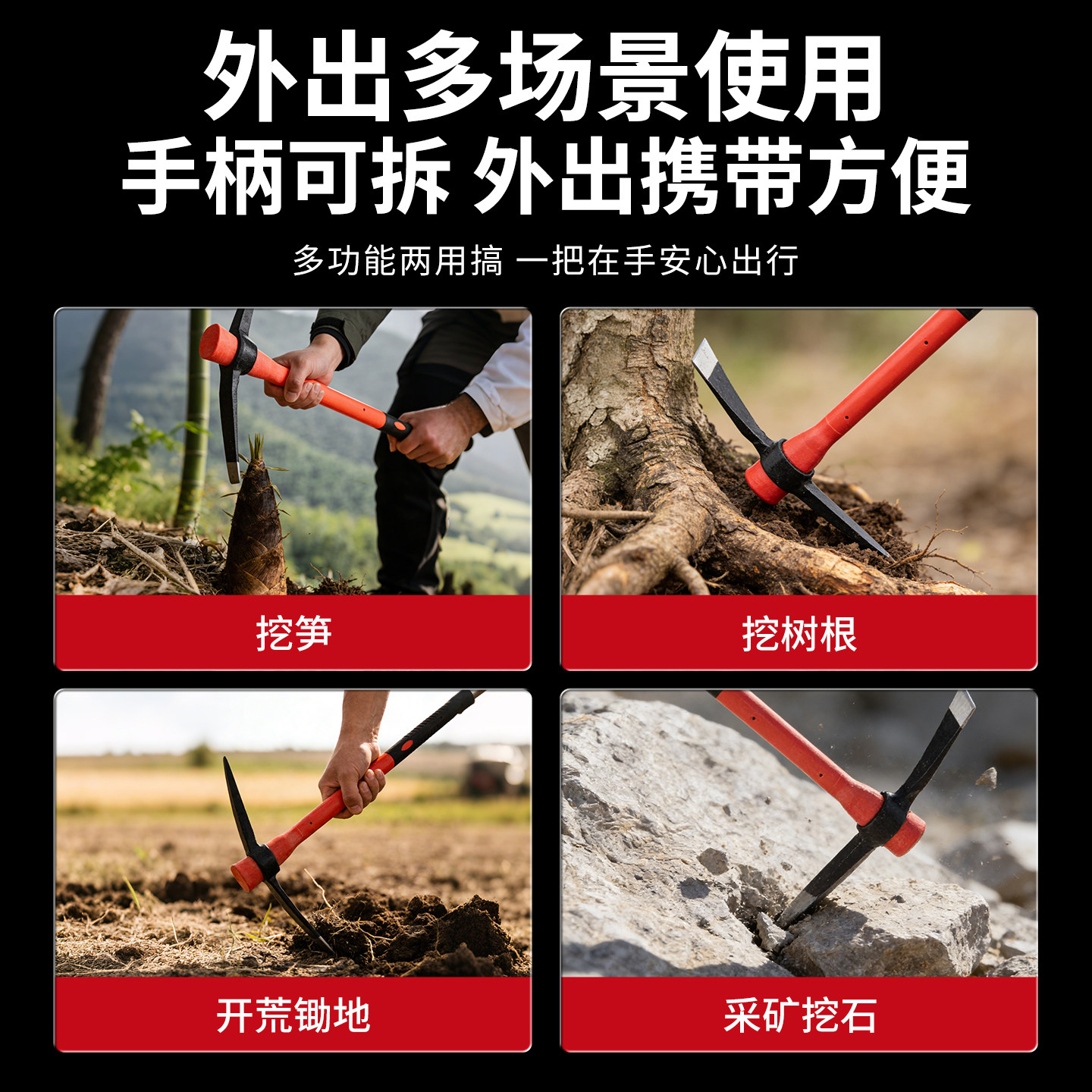 📚 洋镐把防身防身棍大号镐把子木柄塑料纤维柄十字两用开荒锻打硬土
