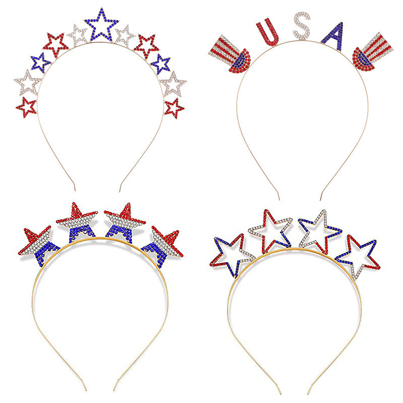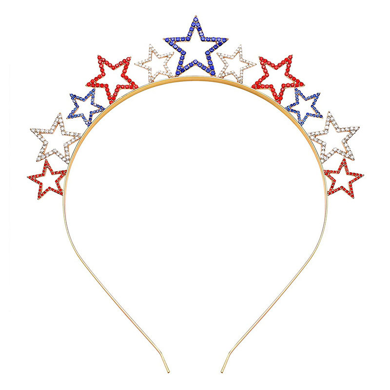 📚 新款美国独立日合金水钻星星发箍五角星国旗国庆节日皇冠发饰装饰