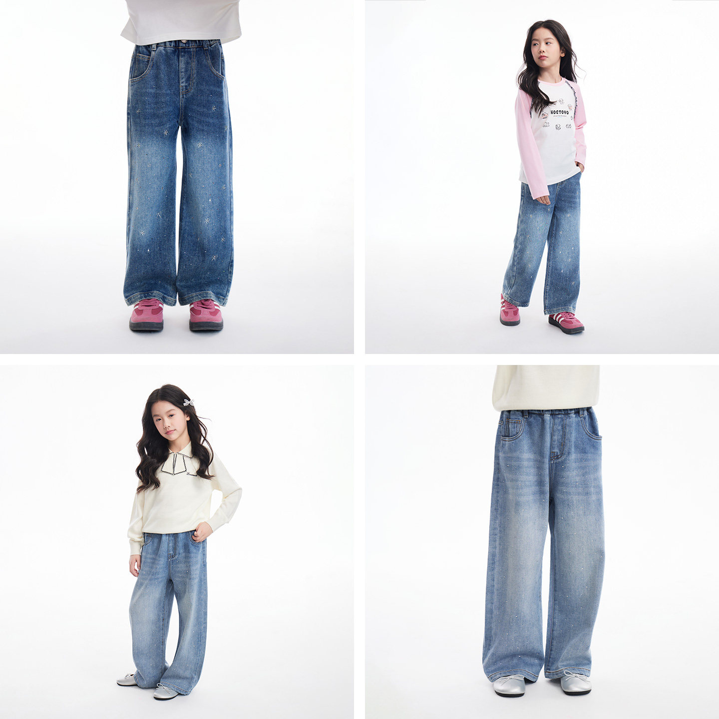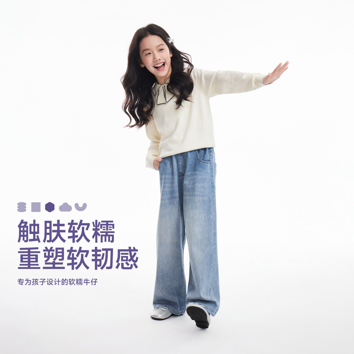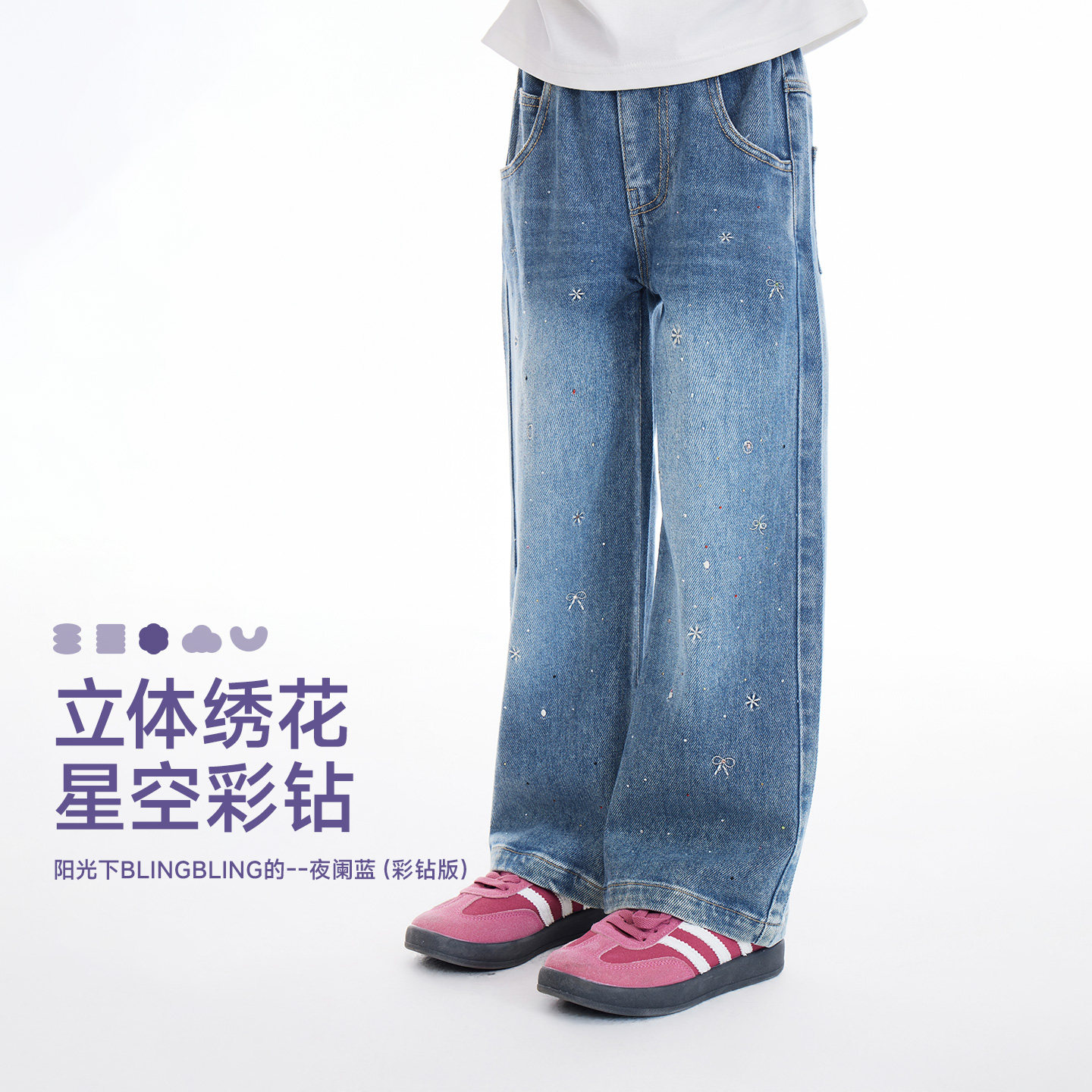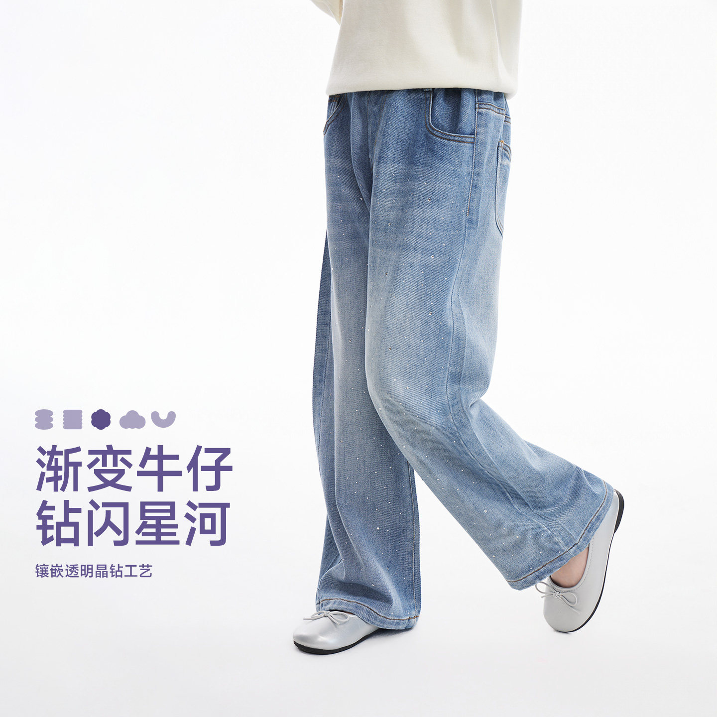 📚 皇室童缘糯米牛女童烫钻牛仔裤春季2026儿童百搭直筒裤中大童长裤