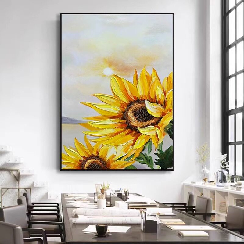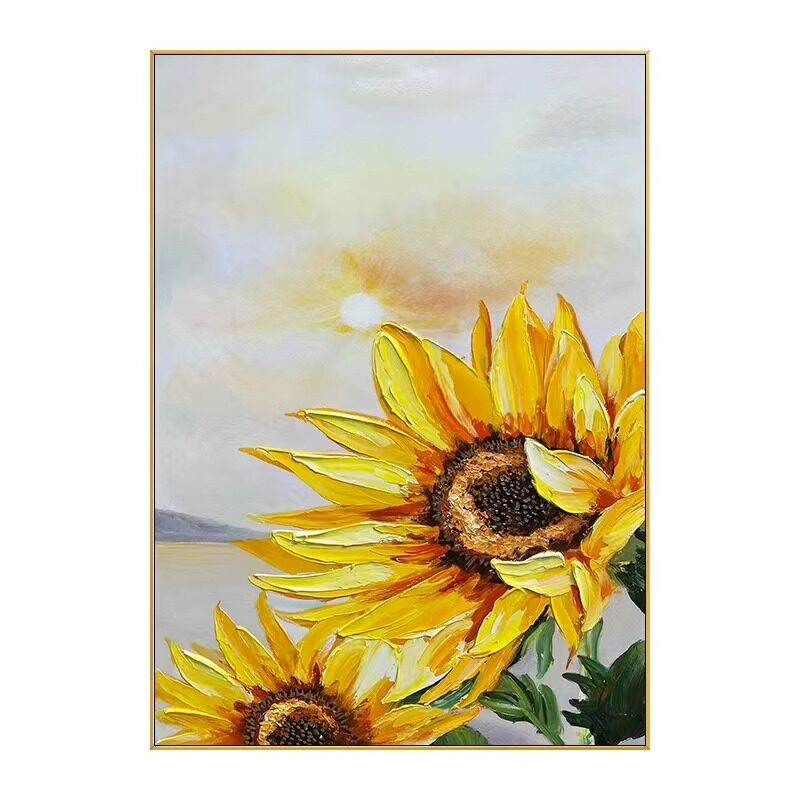 📚 纯手绘欧式大芬向日葵日出油画花卉玄关过道餐厅背景墙现代装饰画
