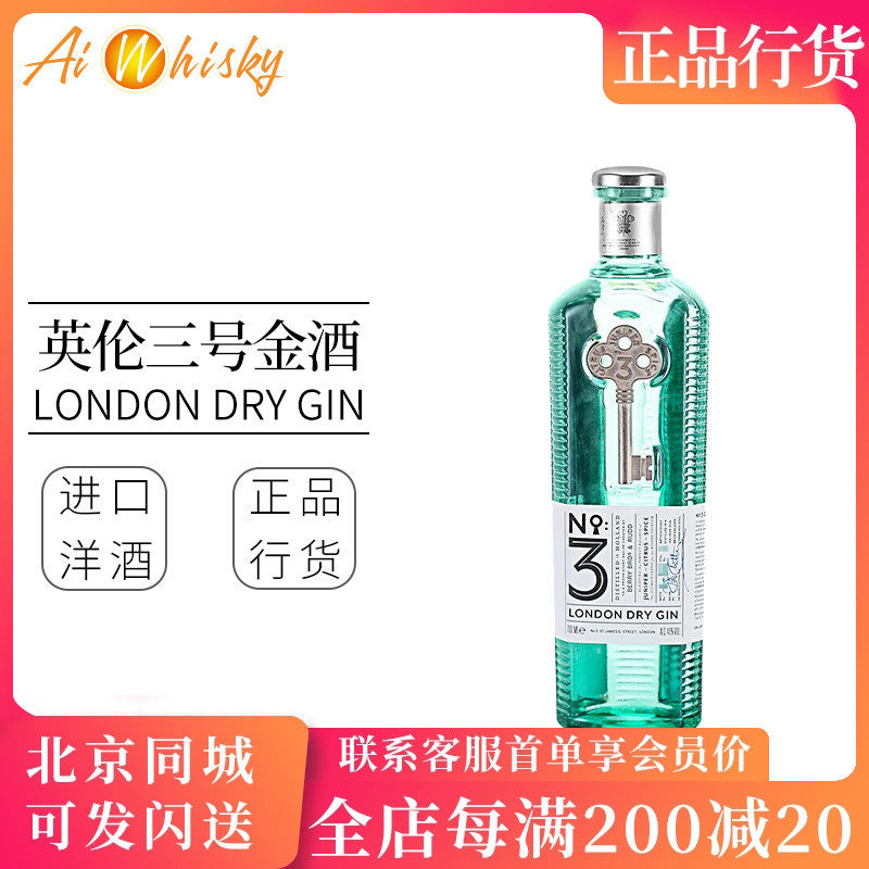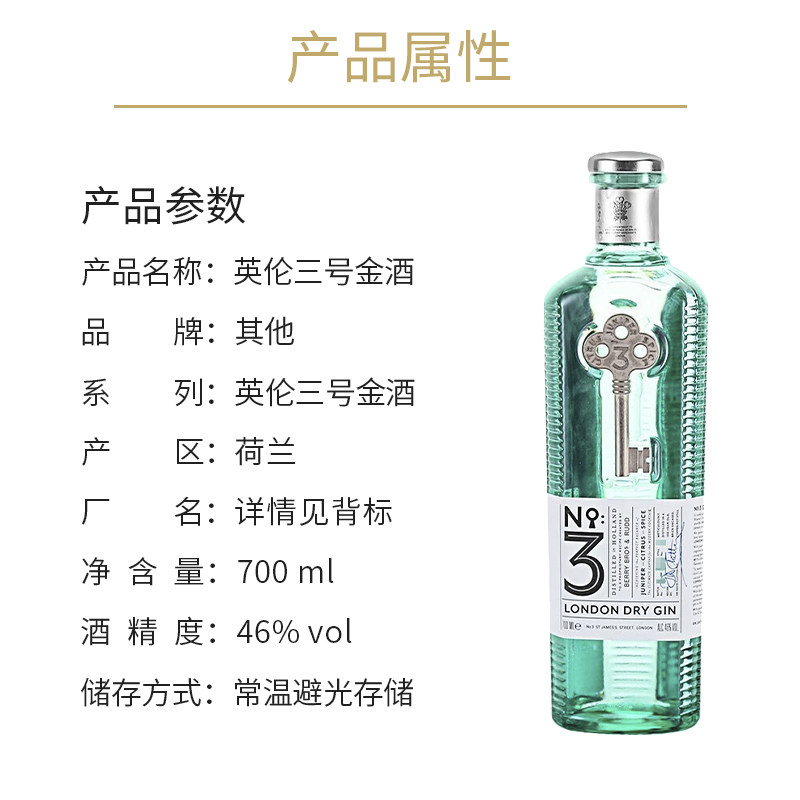 📚 英伦三号金酒杜松子酒琴酒700ml荷兰进口洋酒烈酒正品London No.3