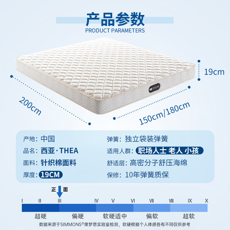 📚 美国simmons 席梦思床垫老人小孩儿童独立弹簧护脊1.5m1.8米 西亚