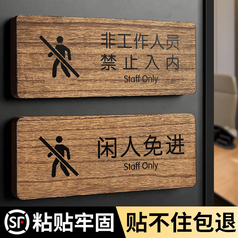 📚 非工作人员禁止入内标识标牌实木闲人免进提示牌办公工作区域非请勿入指示牌厨房重地禁止进入警示牌贴纸定制