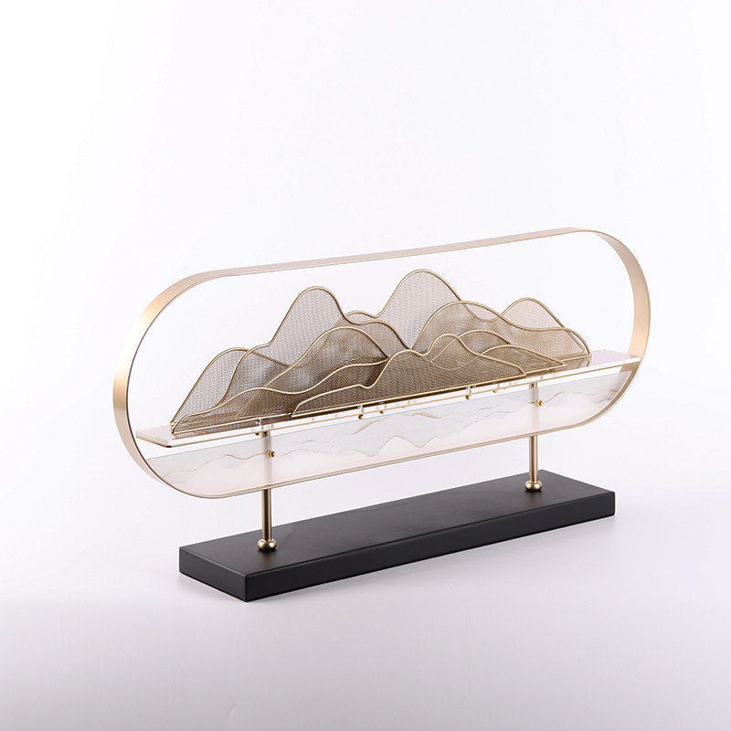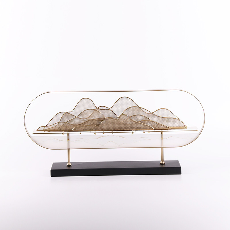 📚 新中式创意金属山景摆件软装禅意售楼处样板房间玄关客厅家居饰品