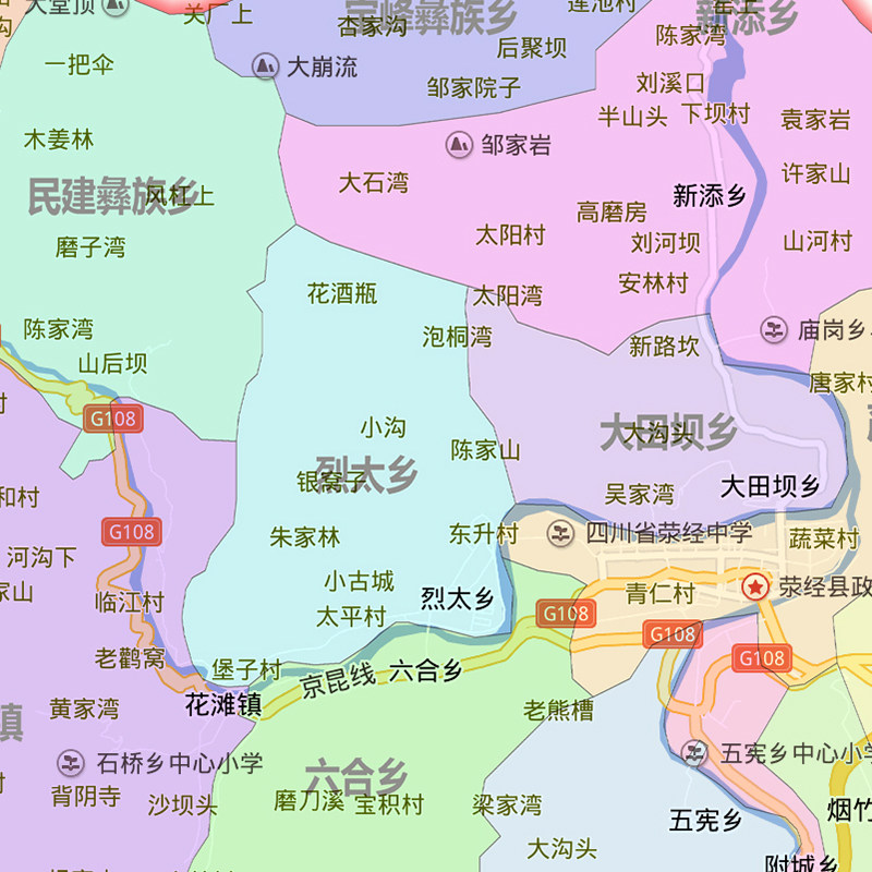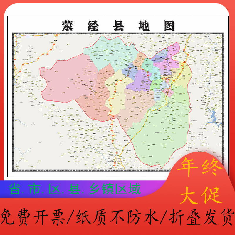 📚 荥经县地图1.15m高清装饰画餐厅墙贴高清壁画四川省雅安市折叠款