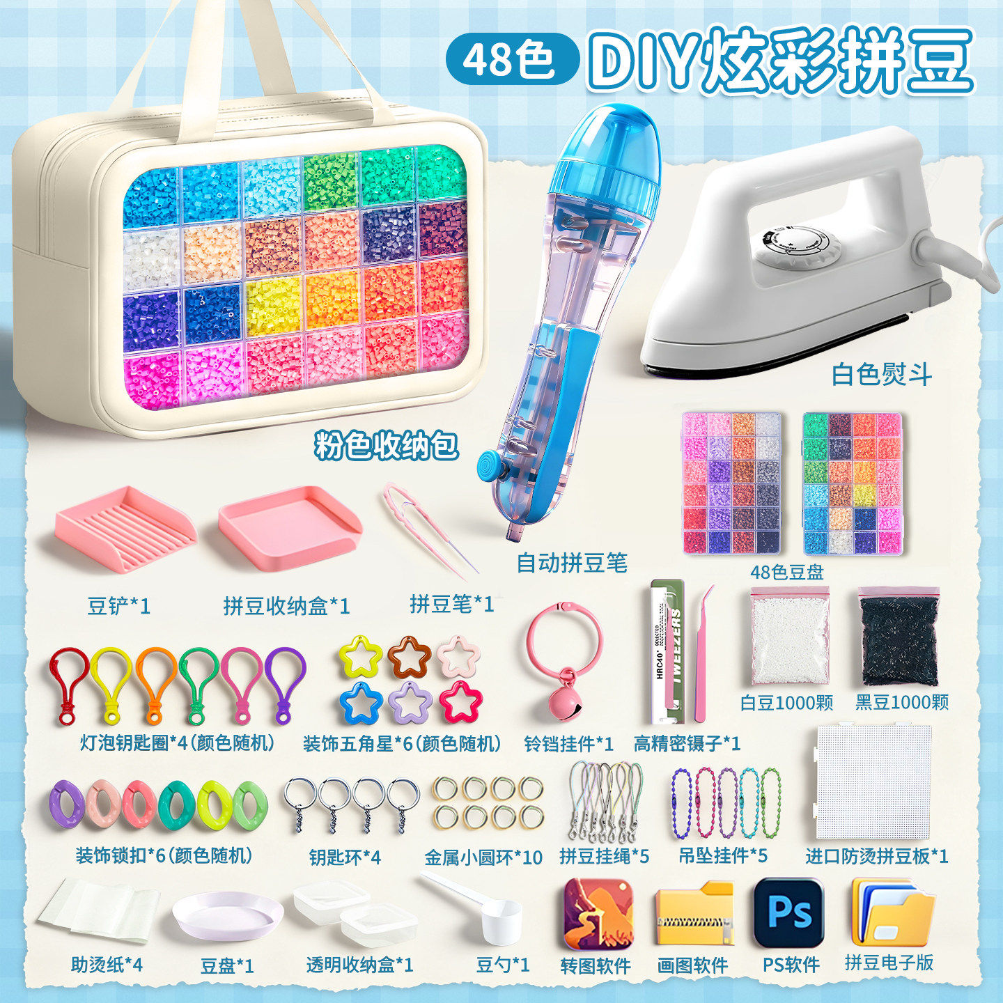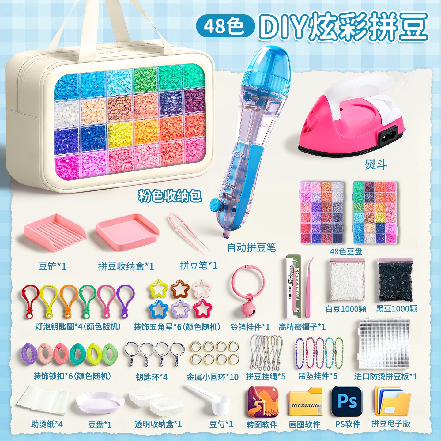 📚 精品拼豆豆手工diy材料包高级全自动拼豆笔小舞家拼豆工具全套装
