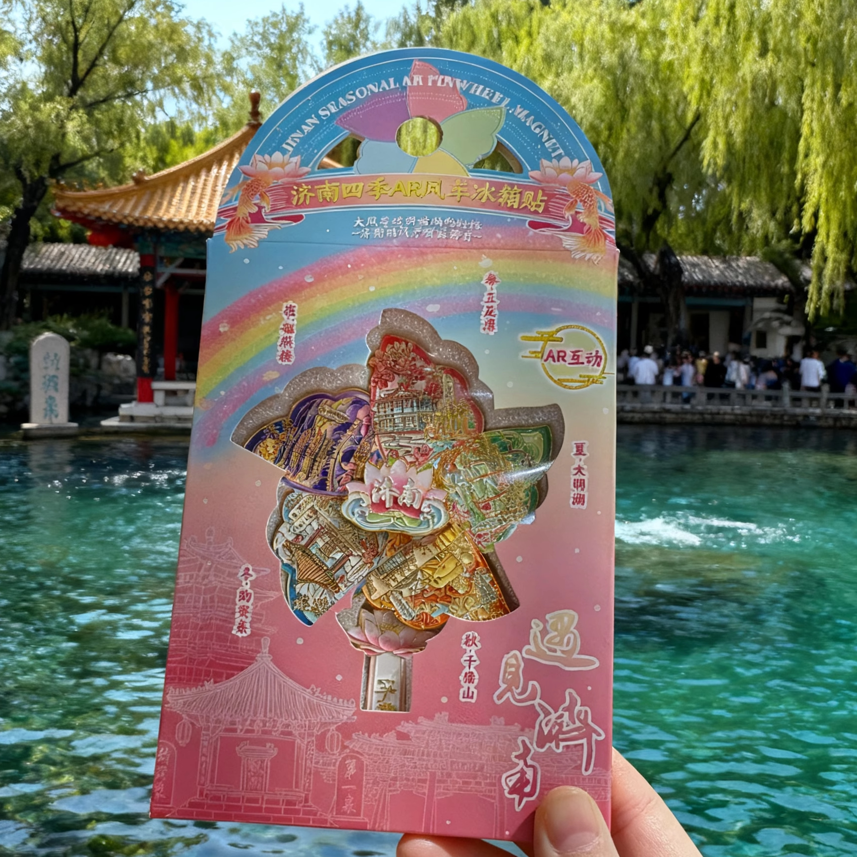 📚 好客山东济南四季AR风车冰箱贴大明湖中国风城市景点文创纪念品