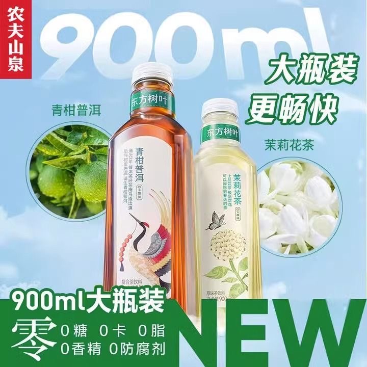 📚 农夫山泉东方树叶900ML整箱乌龙黑乌龙青柑普洱茉莉花无糖茶饮料