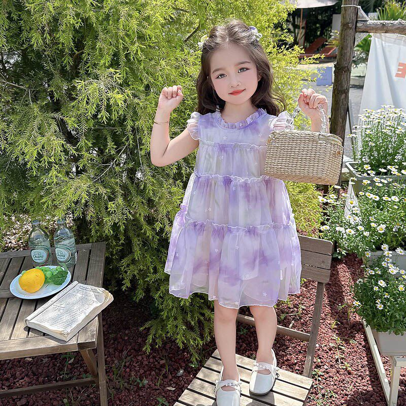 📚 女童紫花夏天裙子夏季2024新款儿童夏款雪纺公主裙宝宝夏装连衣裙
