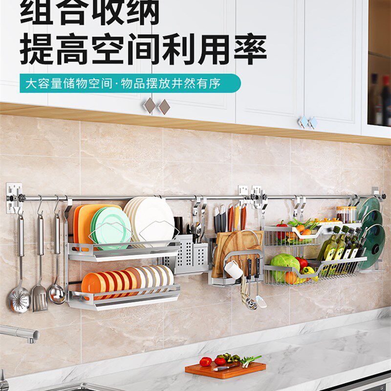 📚 收纳碗碟厨房锅架刀架不锈钢壁挂式沥水架置物架挂件免挂钩架打孔