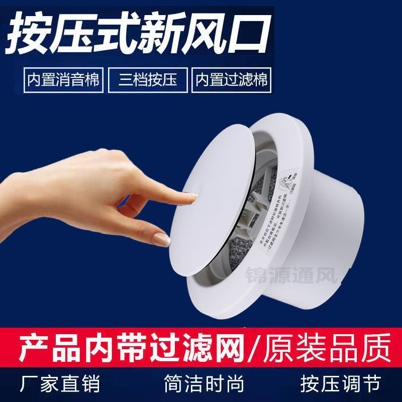📚 新款按压式新风系统配件abs圆形可调出风带过滤网降噪空调排风口