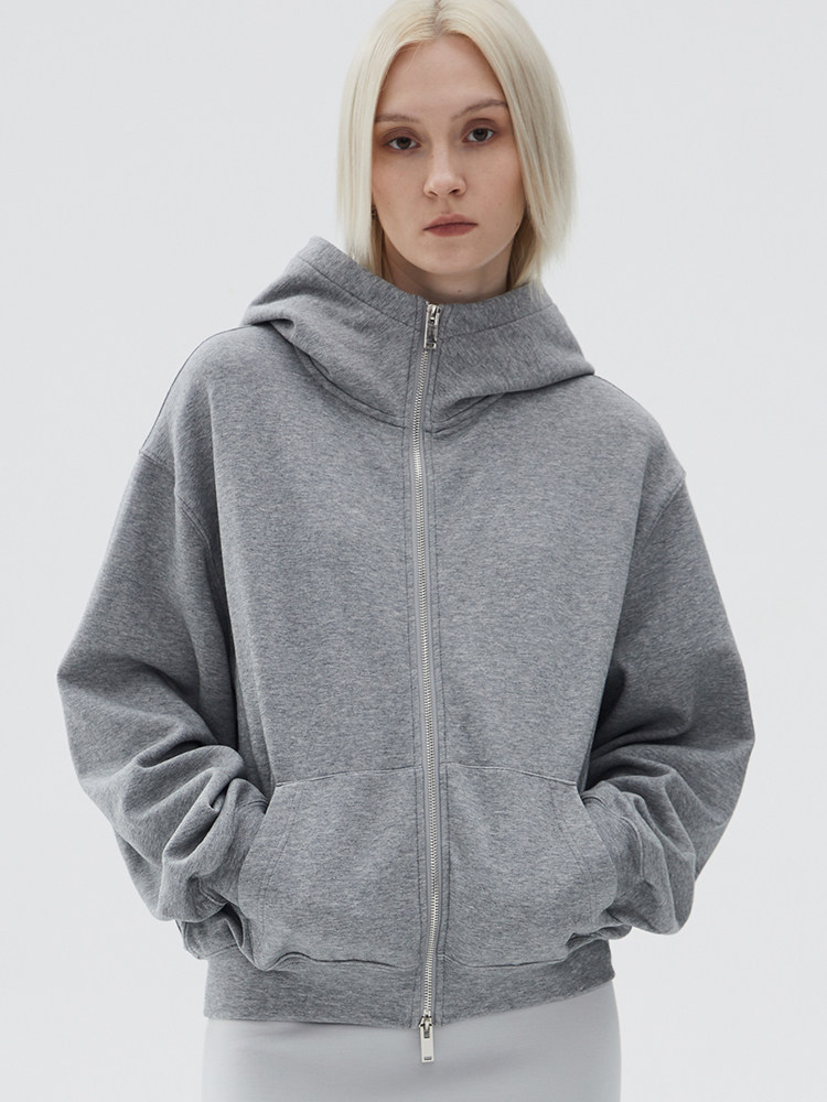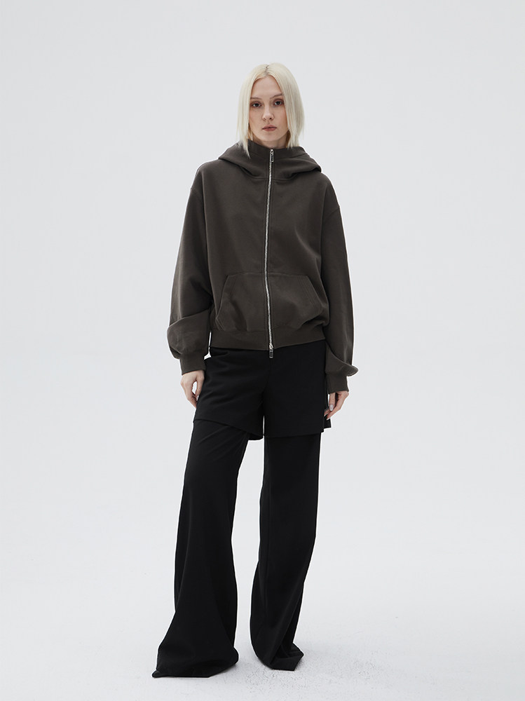 📚 ROLLINGAGE 时髦感休闲连帽衫卫衣女立体双开头拉链宽松外套上衣
