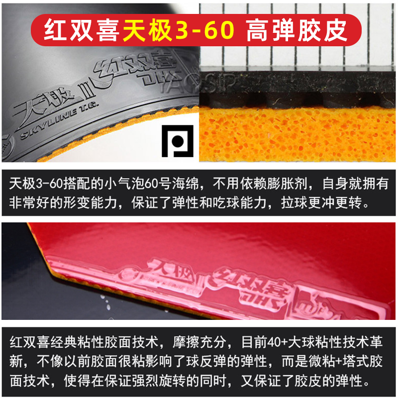 📚 【乒乓网】红双喜天极3-60胶皮三-60号蛋糕海绵乒乓球反胶套胶