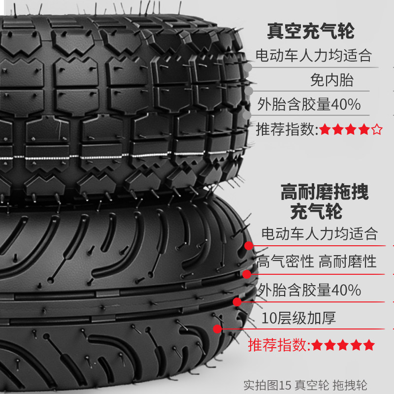 📚 平板车高耐磨可牵引真空充气轮万向轮子重型脚轮橡胶静音加厚轱辘